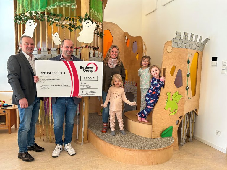 In Dingolfing spendete die Bachner Group 1.500 Euro an die Kinderinsel St. Barbara Aham und setzt damit ihr gesellschaftliches Engagement in der Region fort.